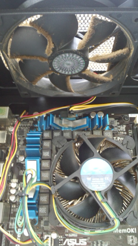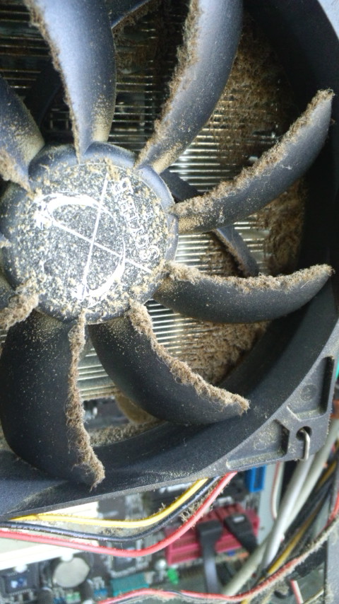 爆熱CPUという事と埃環境とCPUFANのグリス切れすべてが重なって1年後に悲鳴あげたようです。