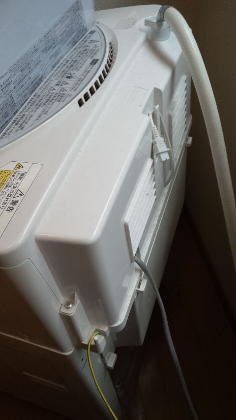 次に後ろのカバーを外します。ネジ2箇所と水道のホース外す。